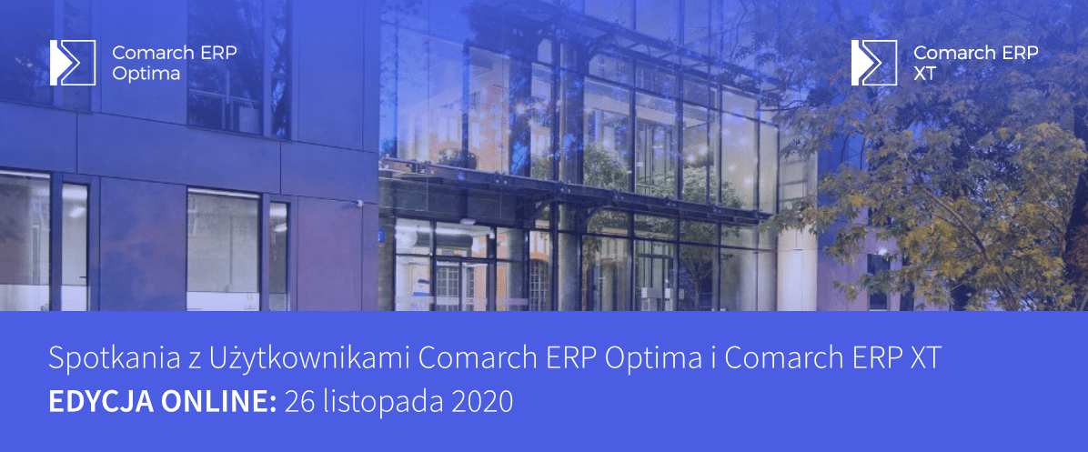 26 listopada bieżącego roku odbędzie się kolejna, piątka już edycja spotkań z użytkownikami systemu Comarch ERP Optima. Z wiadomych względów odbędzie się ona zdalnie, ale to nie jedyna nowość. Po raz pierwszy do udziału w wirtualnym spotkaniu zapraszani są także użytkownicy aplikacji Comarch ERP XT. Jest to narzędzie dla małych firm, mogące służyć do fakturowania, prowadzenia pełnej i uproszczonej księgowości, magazynów, terminali POS, dodatkowo wyposażone jest w mechanizm OCR oraz analizy business intelligence.